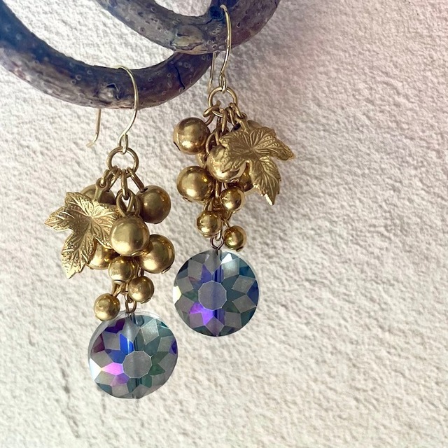 【スウィングピアス】 カットガラスがきれいなグレープモチーフのピアスです。 USED品のため一点のみの販売になります。 ◇商品情報 サイズ:H約5cm×W約1.5cm 素材:合金(メタル)/ガラス カラー:ゴールド ◇コンディション詳細 多少の経年劣化はありますが目立つ傷や欠けはなく良いUSEDコンディションです。 【※ご購入する前に必ずお読み下さい】 ◇USEDコンディションについて 当店の商品はUSED品になります。そのため経年の使用による何かしらかの傷や汚れ使用感がございますが、それらも含めUSED品の魅力、デザインの一部と捉えて楽しんでいただきたいと考えております。 目立つものは、商品説明にてご説明しておりますが、細かな傷や欠け、汚れ、経年による金属や接着剤の変色、ブローチのピン部分の歪みなどの詳細は記載しておりません。 古いものならではの味わいということをご理解いただいた上で、ご注文いただきますようお願いいたします。 商品の特性上、これら経年が理由の返品・交換は出来ませんので、ご注意ください。 ご心配な方は、ご購入前にコンディション等のご確認をお願いいたします。お気軽に【ショップに質問する】もしくは【CONTACT】からお問合せ下さい。