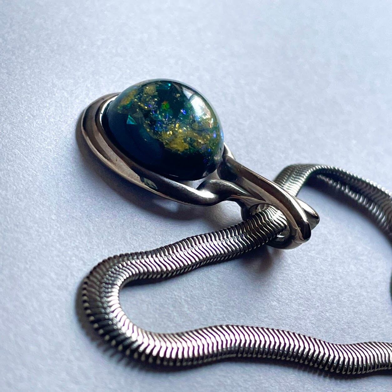 光が入った時に発色よく、きれいに輝くワントップのネックレスです。