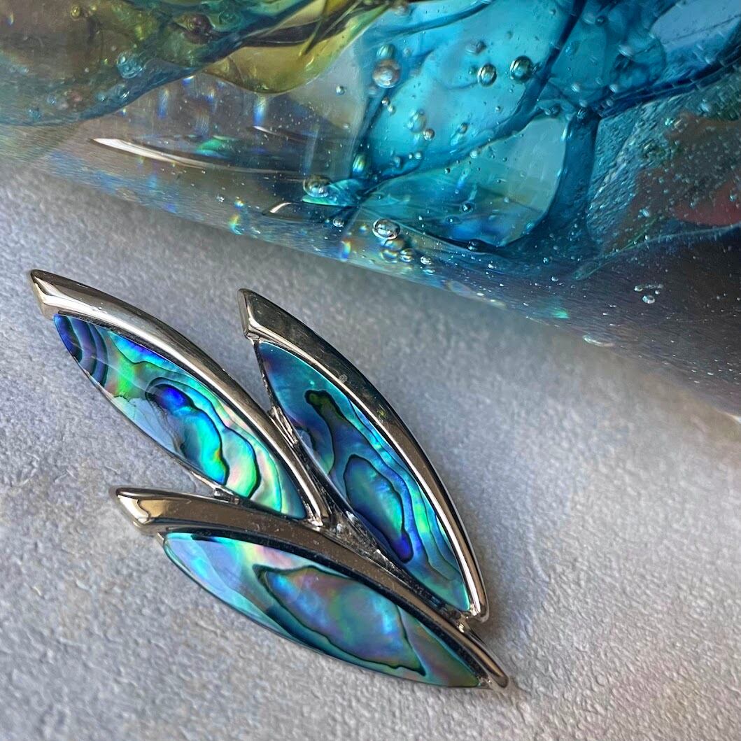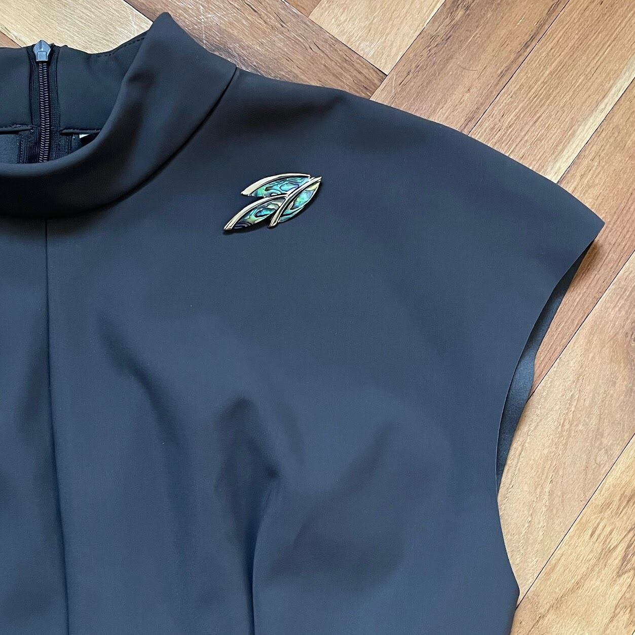 表面の艶感と、見る角度によって変わる輝きが目を引くシェルのブローチです。