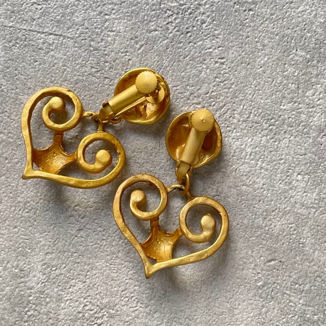 透かしのハートデザインが魅力的なマットカラーのイヤリングです。