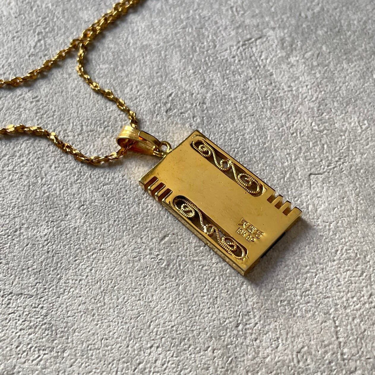 クラッシックなデザインにブラックのストーンがヴィンテージライクなネックレスです。