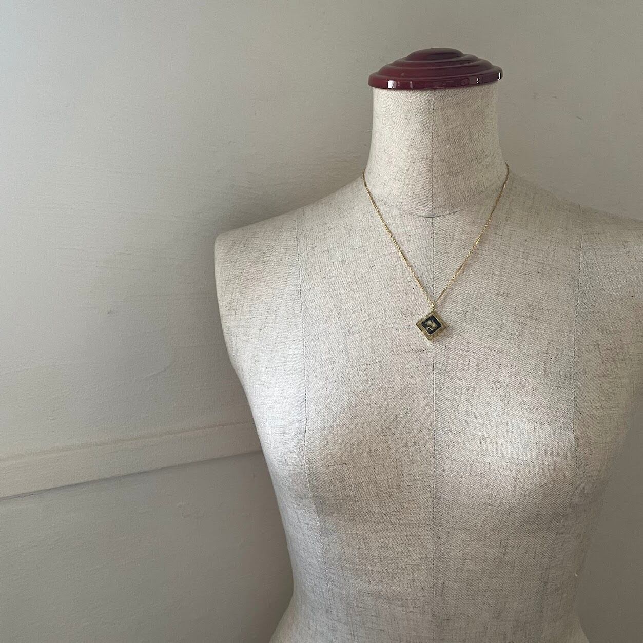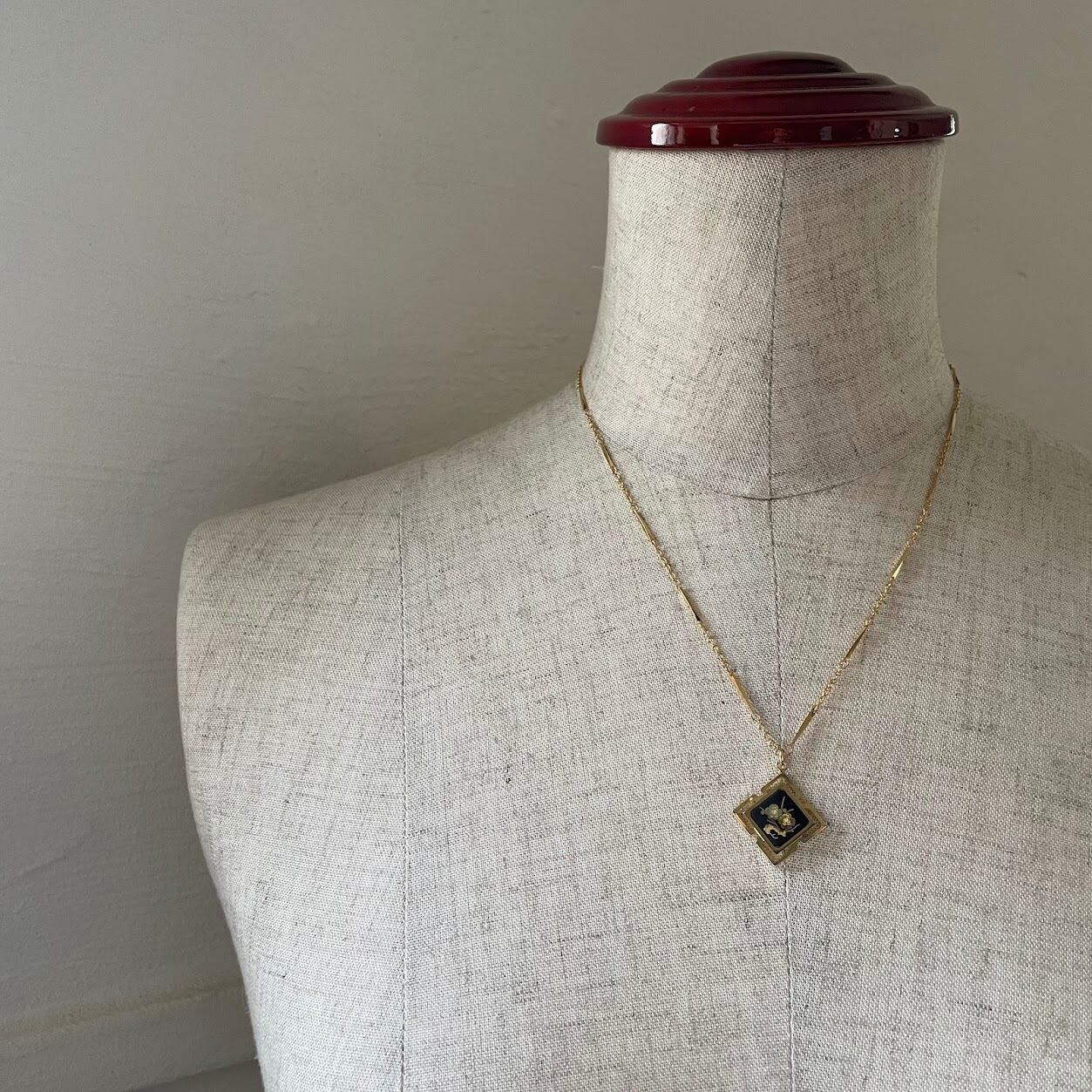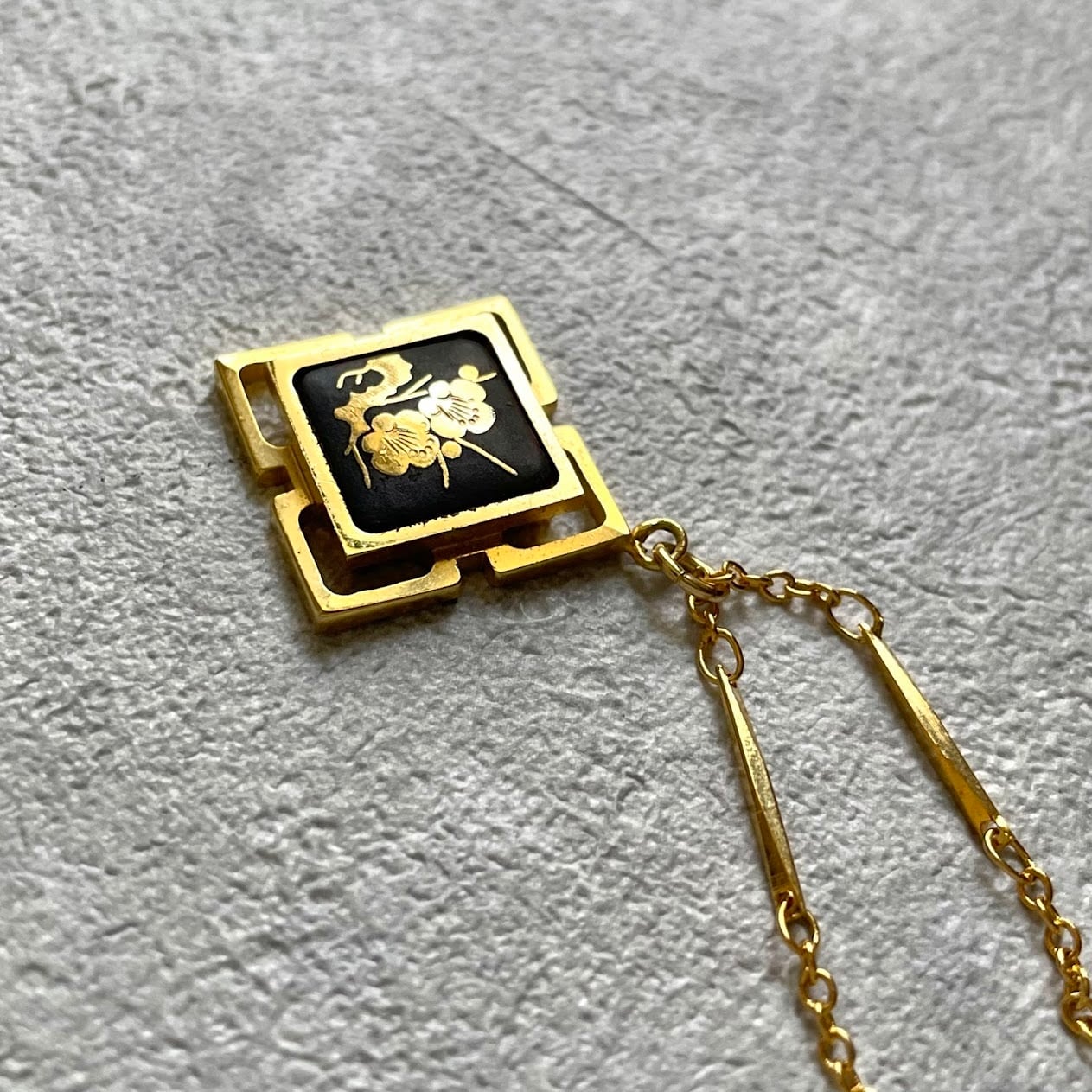 シックなデザインの花が描かれた象嵌のネックレスです。