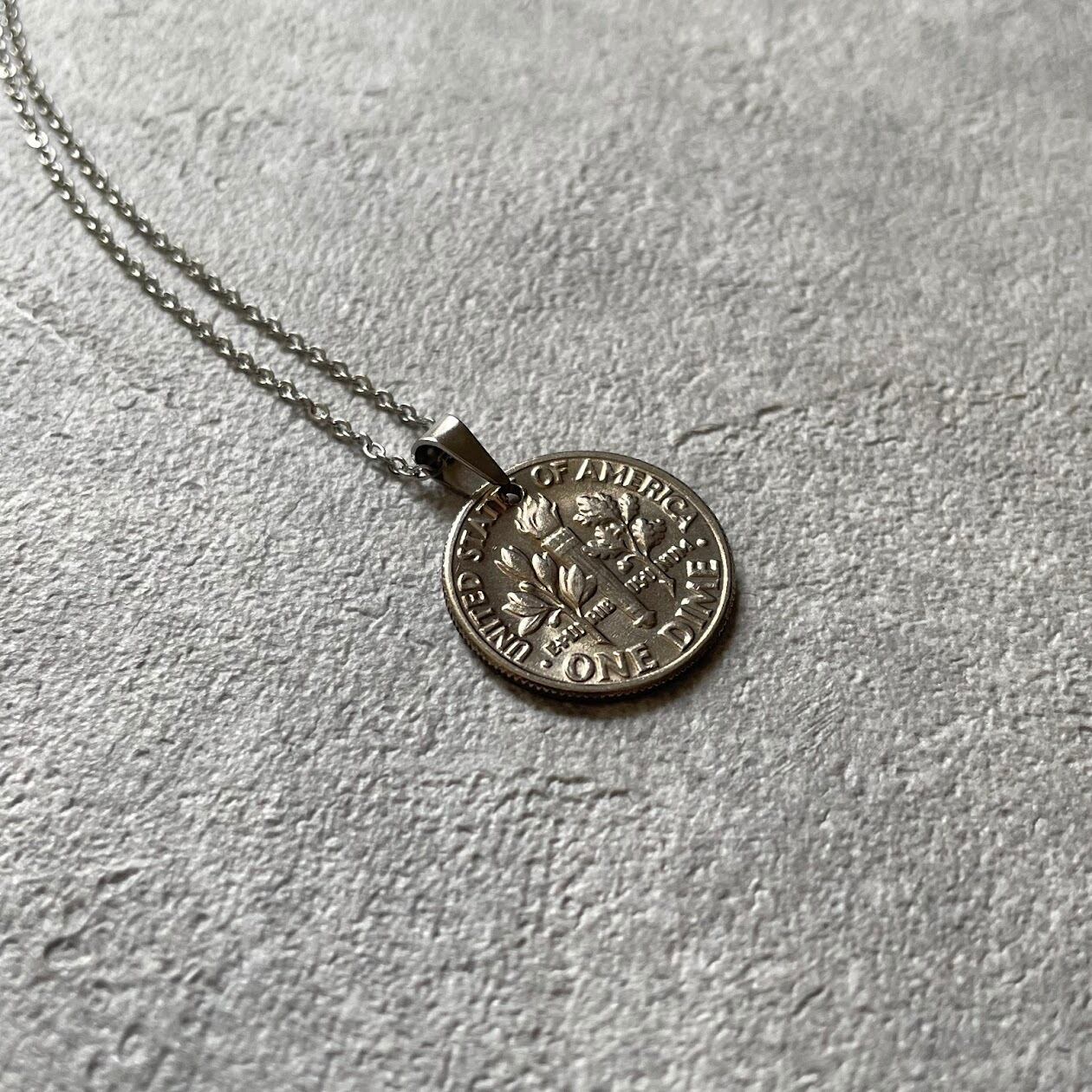 アメリカで1983年に発行されたヴィンテージコインをリメイクして作られた、ハンドメイドのネックレスです。