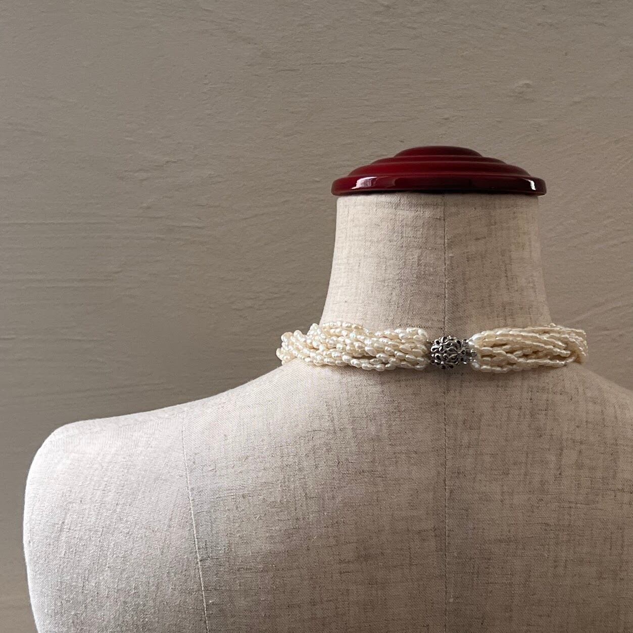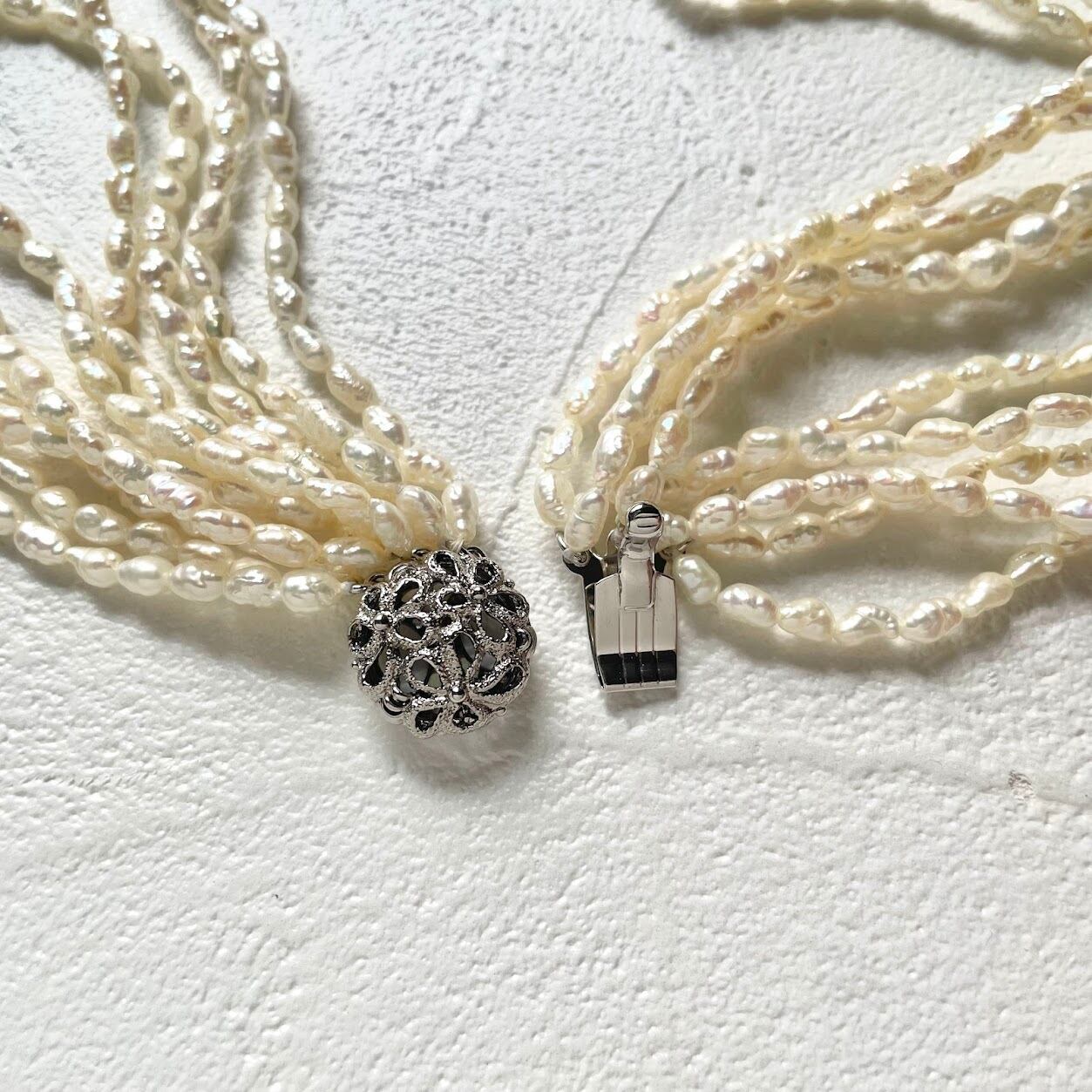 贅沢に使った淡水パールとSILVER素材の装飾された金具が魅力のネックレスです。