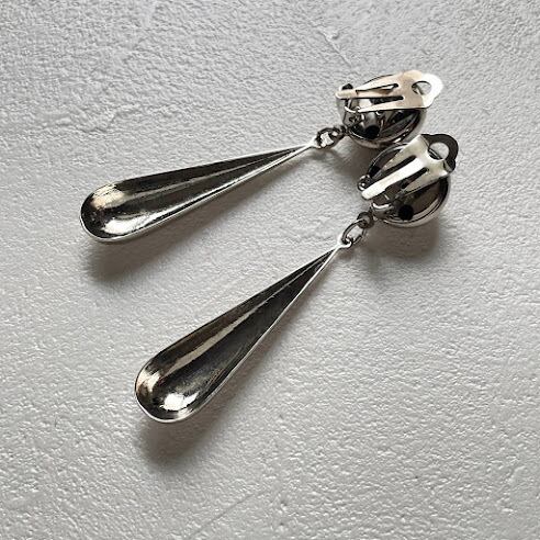 存在感あるドロップ型のメタルが揺れるイヤリングです。