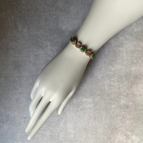 グリーンの色合いと、ガラス使いがアンティークライクなブレスレットです。