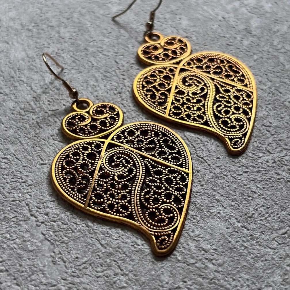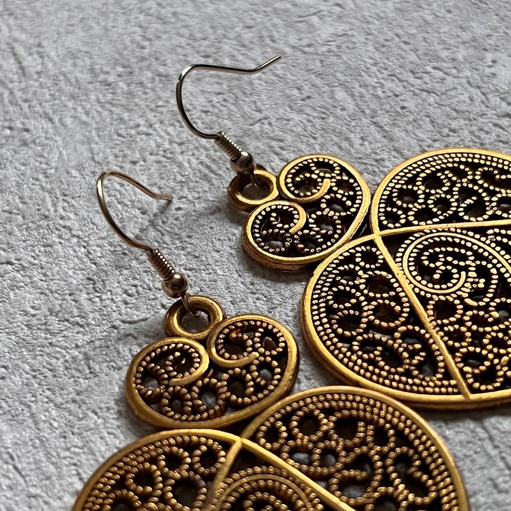 レトロモダンな雰囲気を持つイヤリングをピアスにアレンジした、透かし模様が施されたハートモチーフが印象的なピアスです。