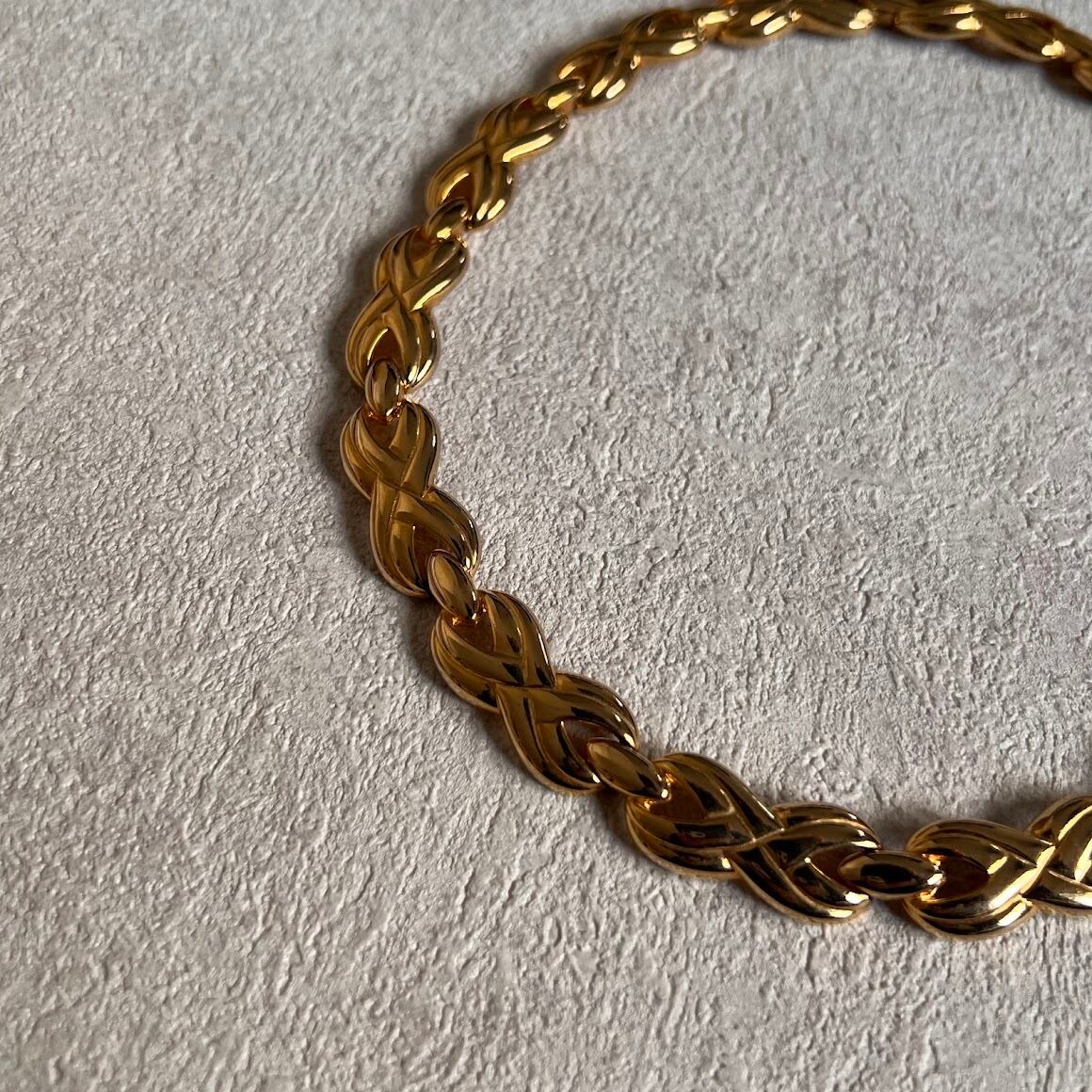 エイトパターンのパーツを繋げた、メタルのネックレスです。