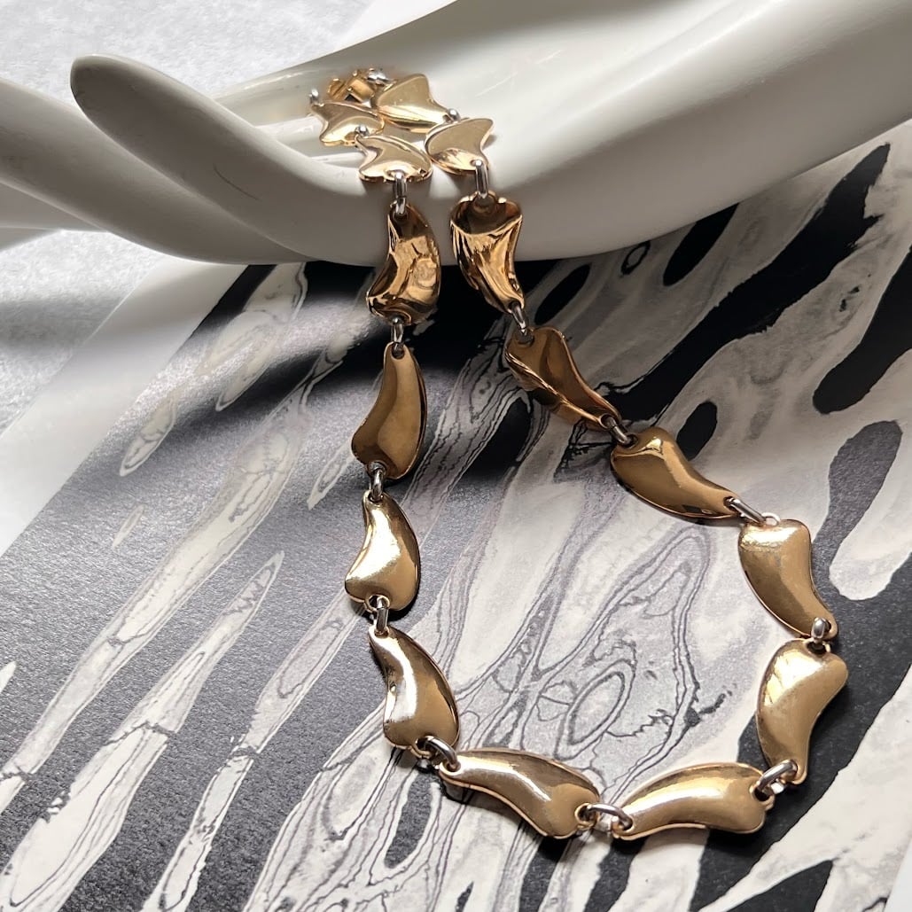 柔らかなフォルムのドロップパーツを繋げた、ニュアンス感あるネックレスです。