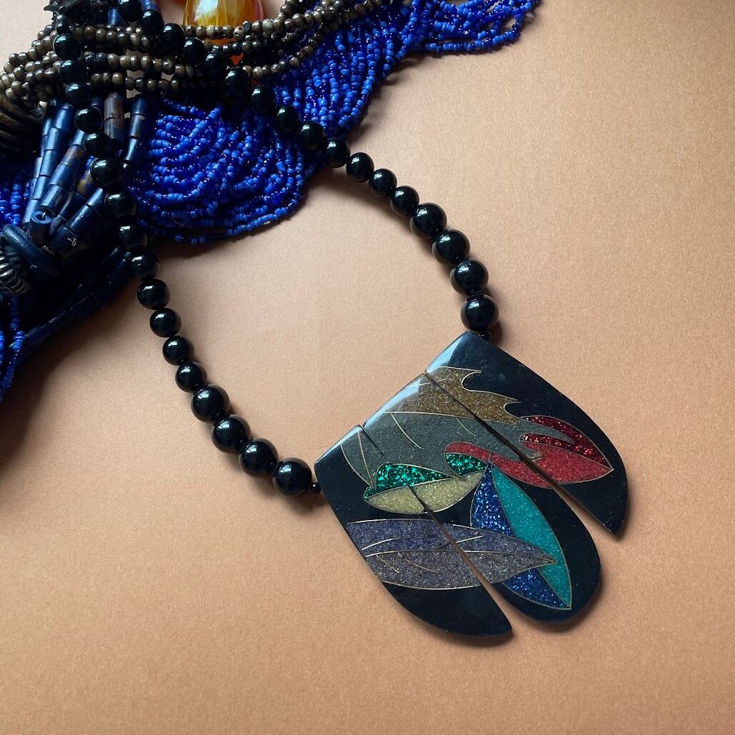 サンドアートで描かれたきれいな色味のボタニカルデザインが魅力のネックレスです。