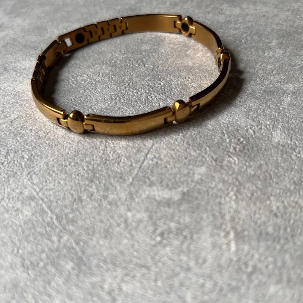 時計のバンドのようなデザインの、チタン素材で作られたBANBIのブレスレットです。