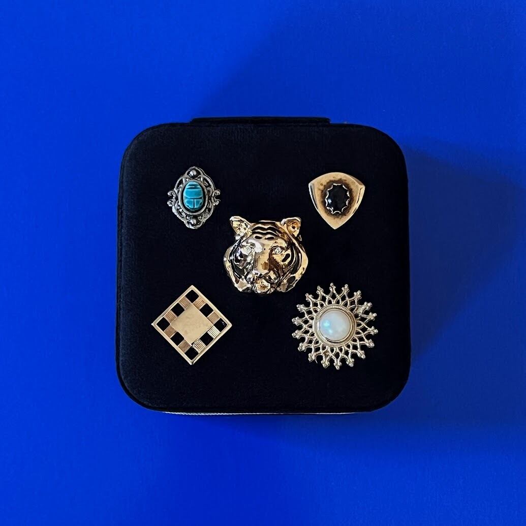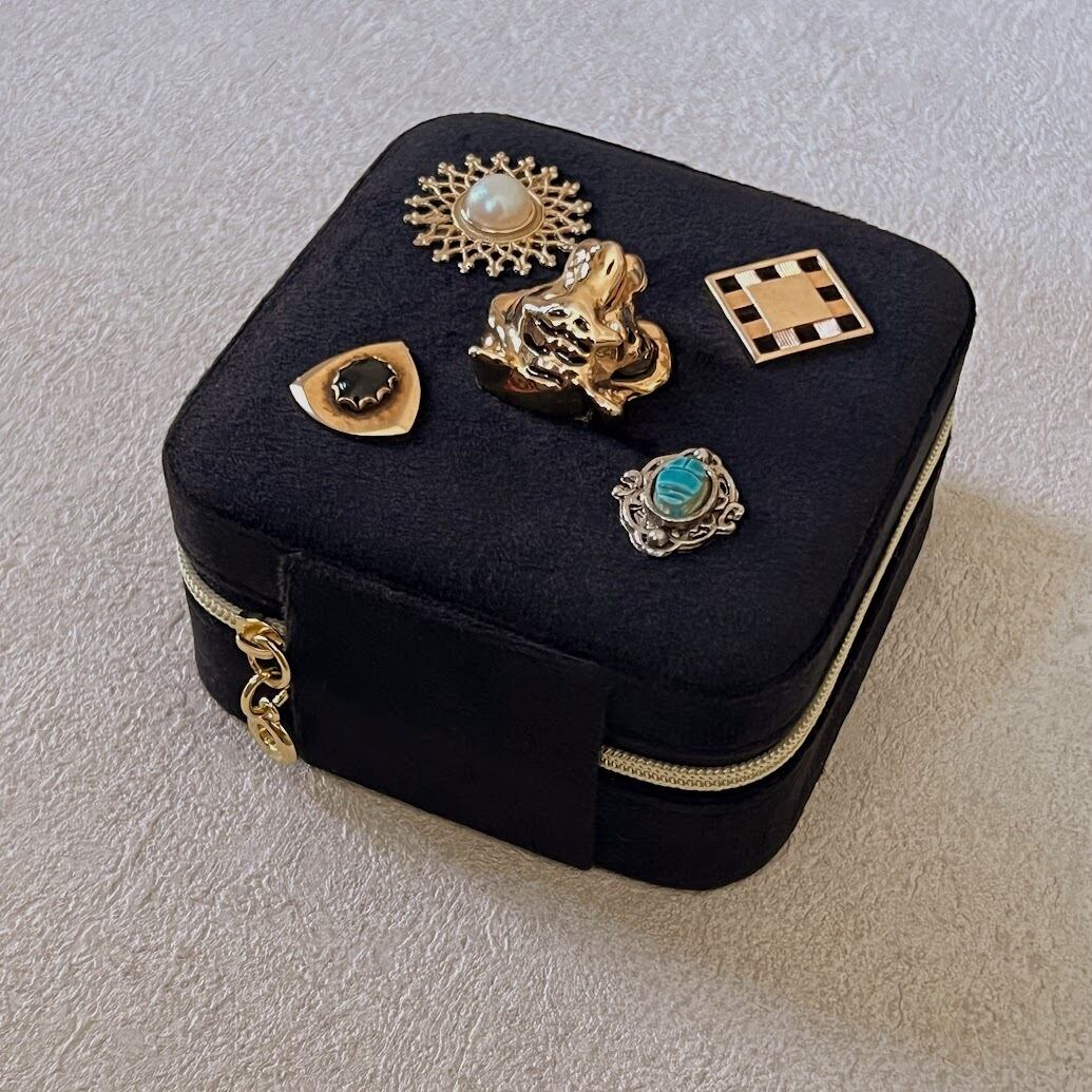 新品のジュエリーボックスに、ユーズドアクセサリーのモチーフ部分を装飾したアップサイクルアイテム。