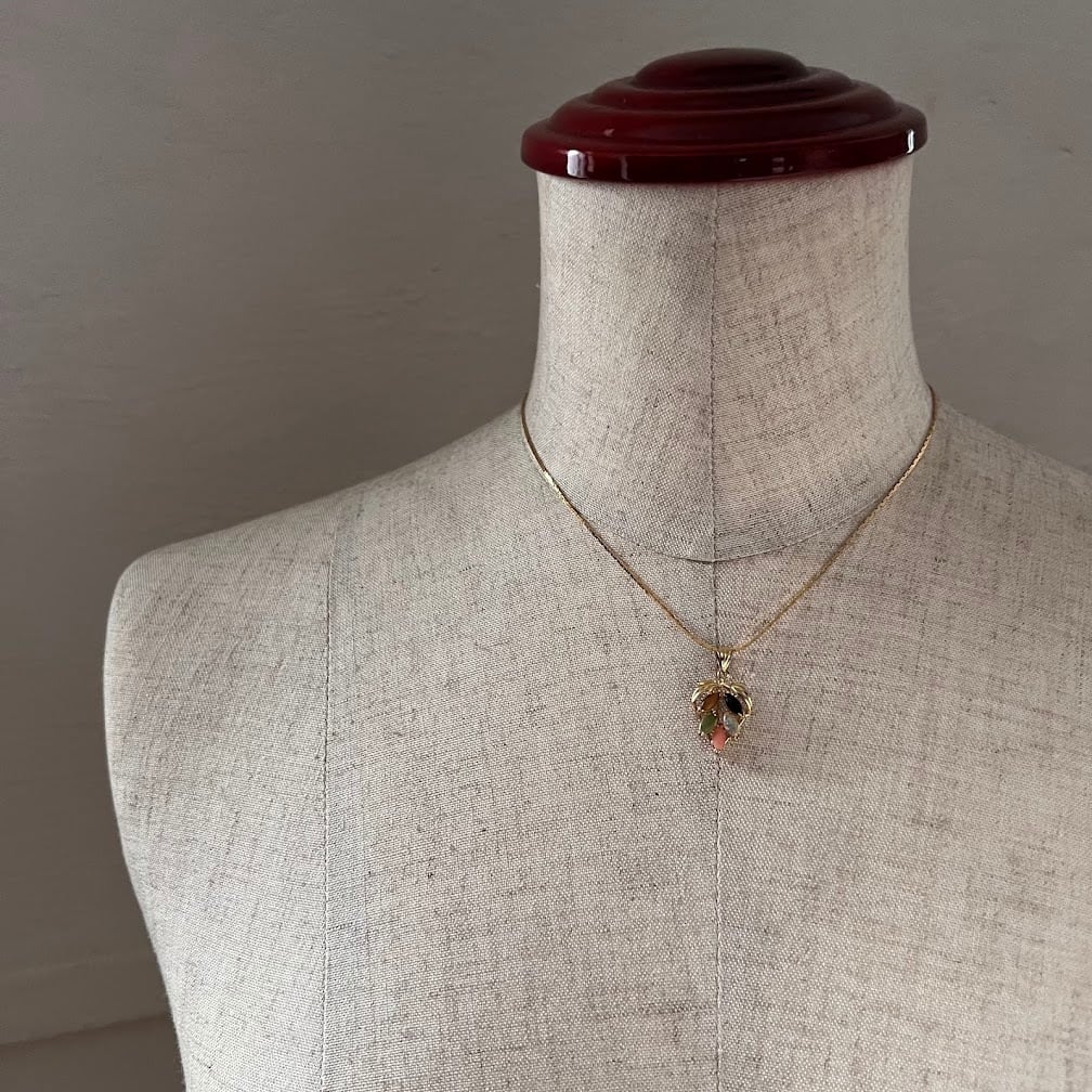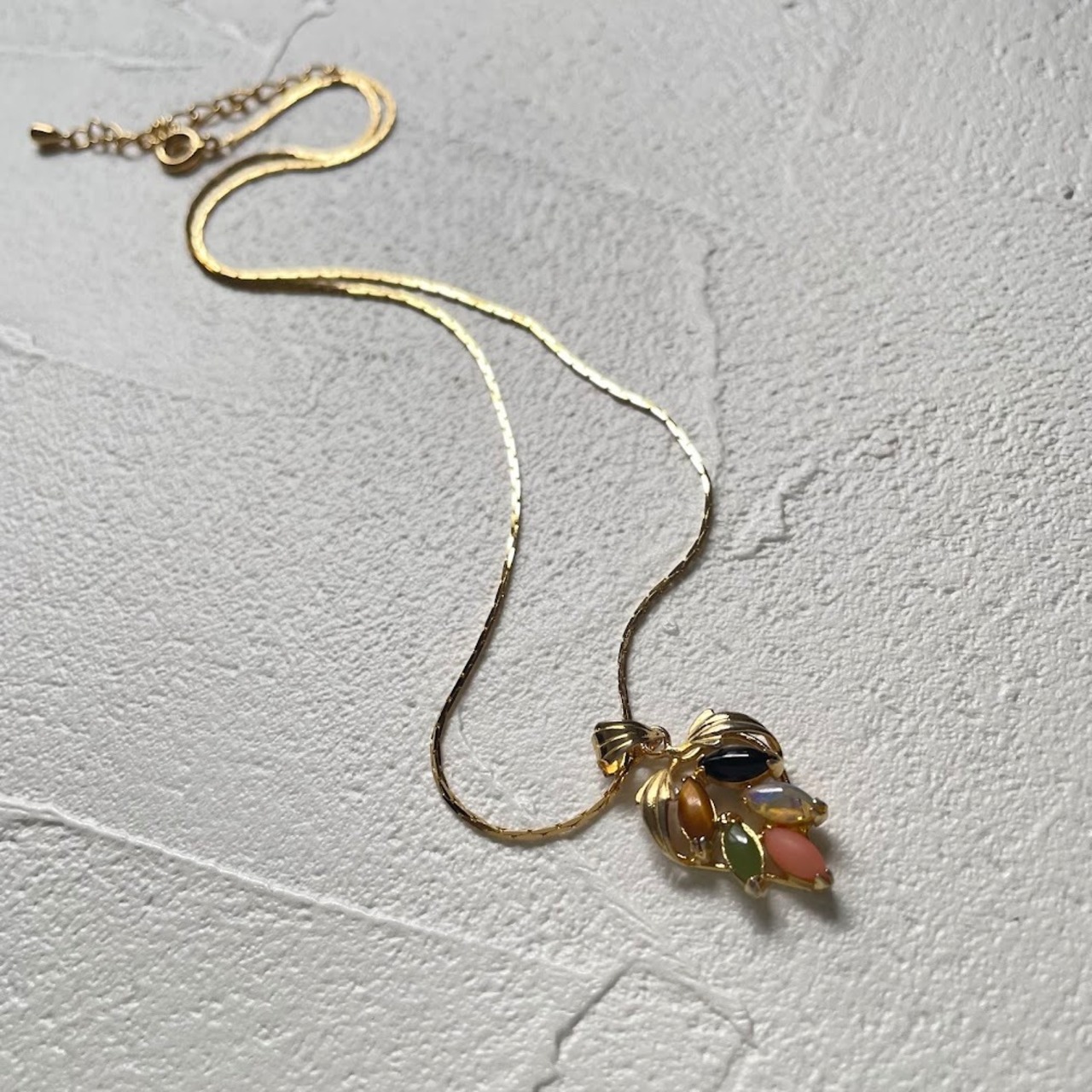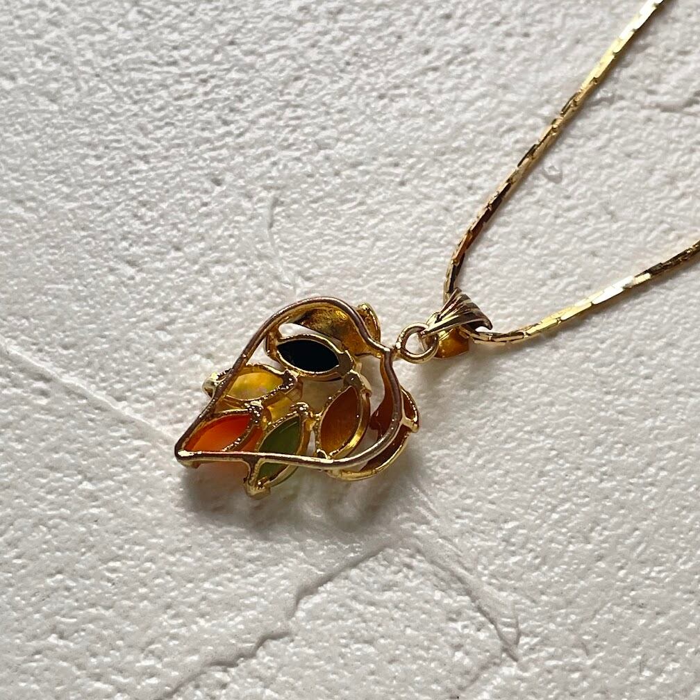 ボタニカルデザインのベースに、木の実のように入れられた天然石が魅力的なネックレスです。