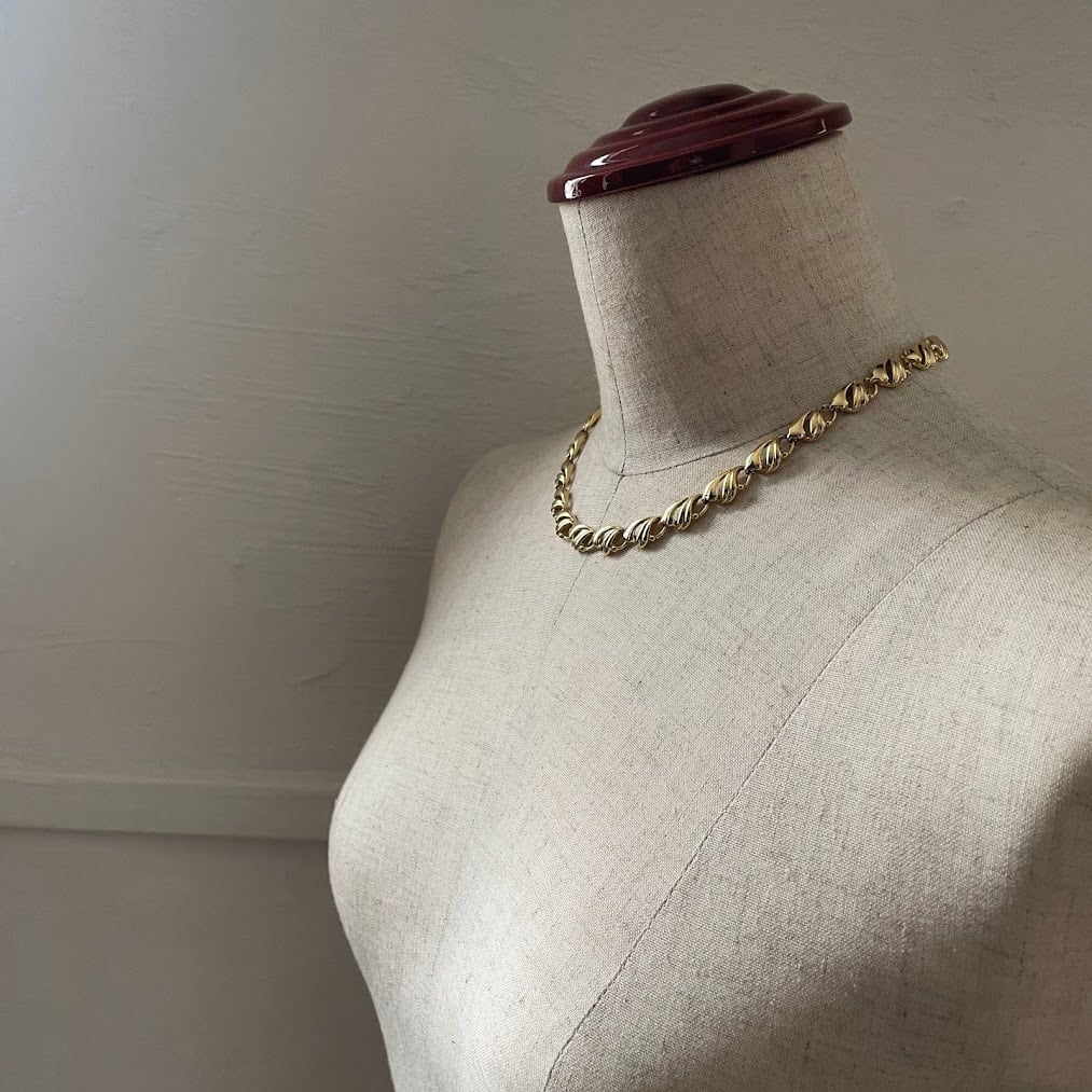 ボタニカルな雰囲気があるパーツを繋げた、ヴィンテージライクなネックレスです。