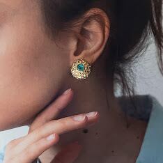 凹凸あるデザインとブルーグリーンのカラーが雰囲気あるイヤリングです。
