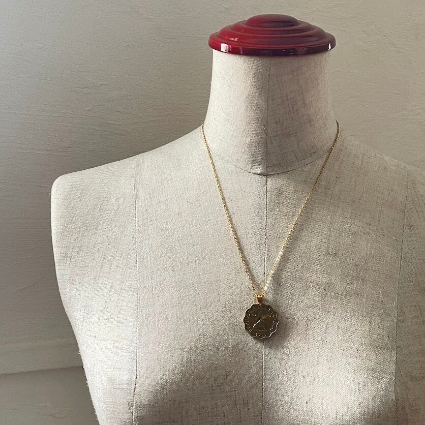 パラグアイで1953年に発行されたヴィンテージコインをリメイクして作られた、ハンドメイドのネックレスです。