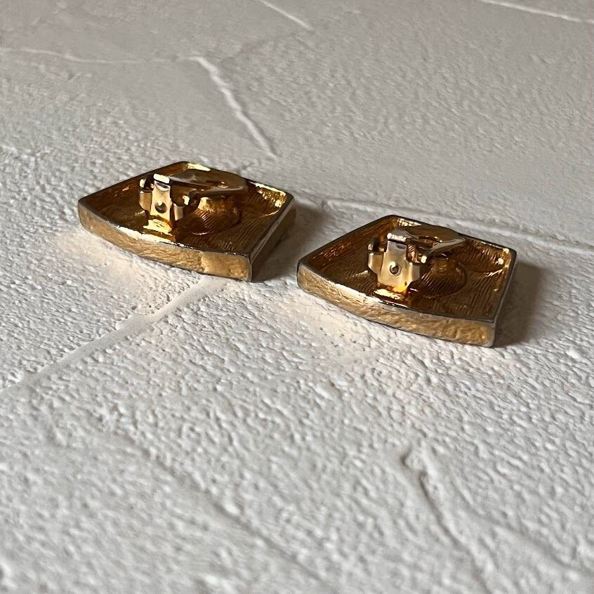 トラぺゾイドのシルエットに、大きな花のデザインがヴィンテージ感あるイヤリングです。