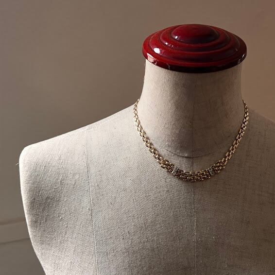 雰囲気良いチェーンにガラスが輝くチョーカーのネックレスです。