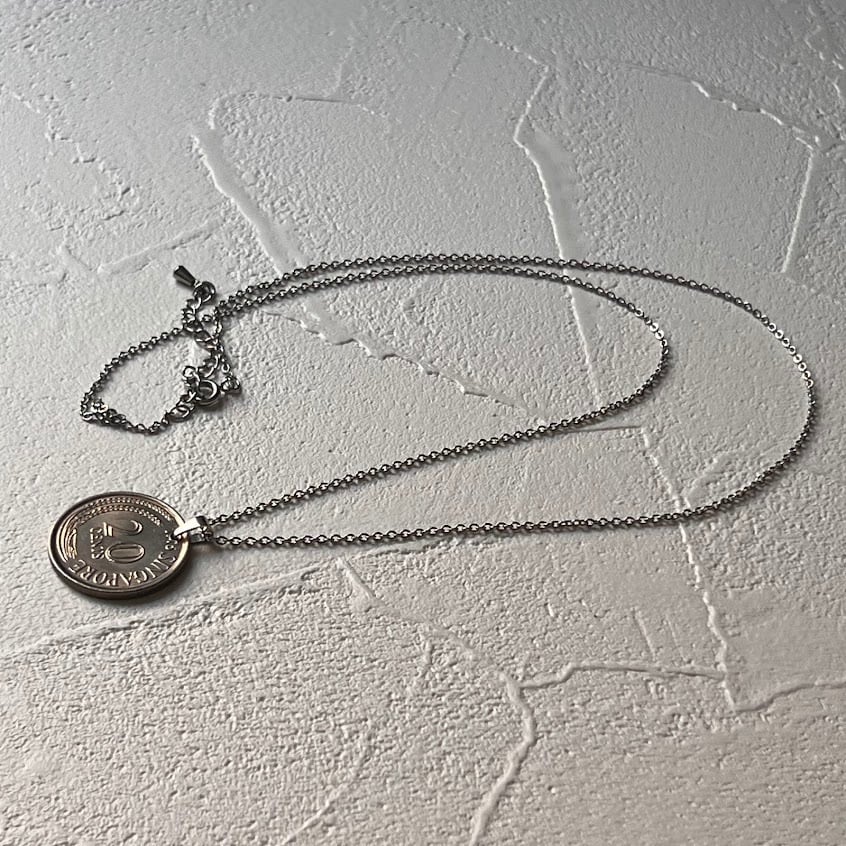 シンガポールで1973年に発行されたヴィンテージコインをリメイクして作られた、ハンドメイドのネックレスです。