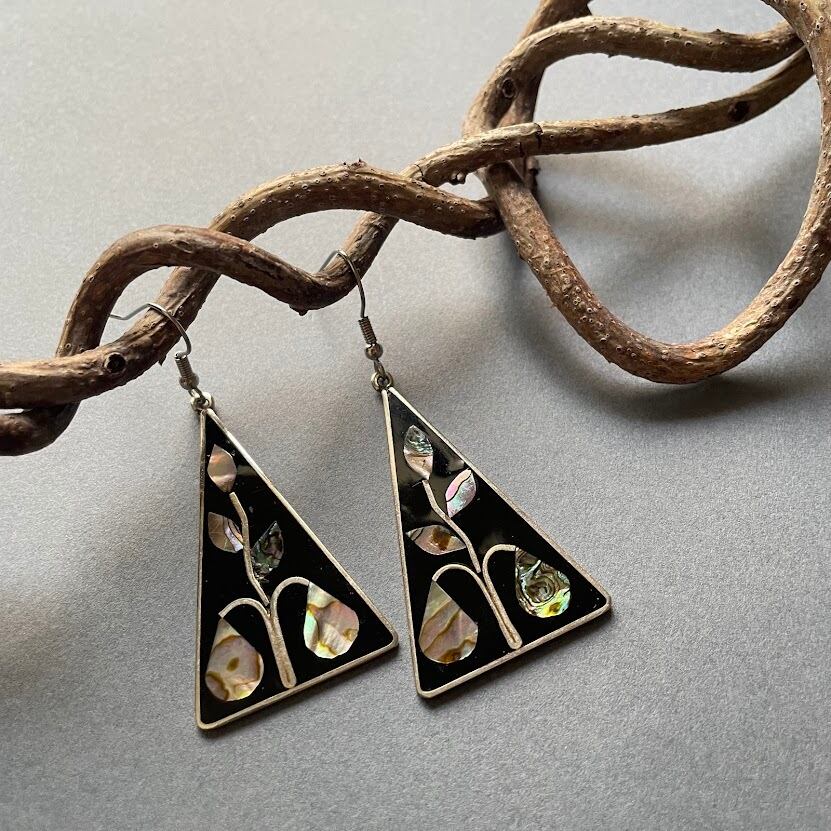 ボタニカルシルエットの、シェルの色合いがきれいなメキシコのピアスです。