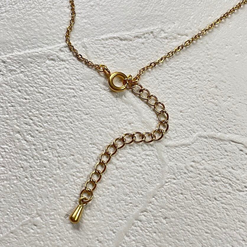 チェーン部分はアレルギーや耐久性を配慮し、新品のステンレス素材を使用しています。