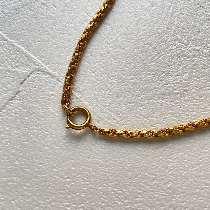 デザインチェーンに梨地パーツがヴィンテージ感あるネックレスです。