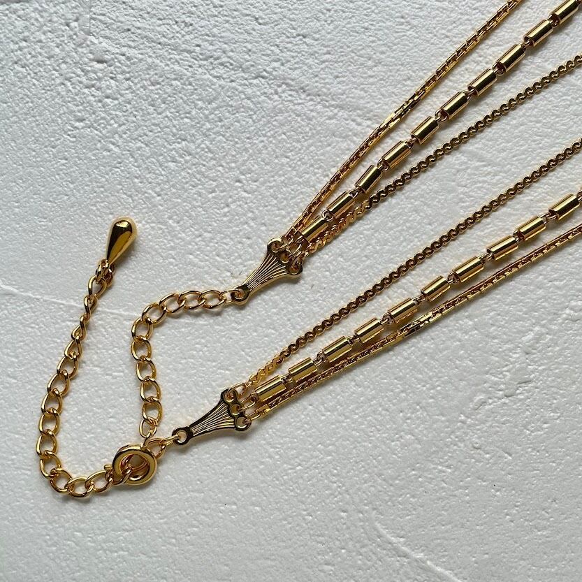 スリー ストランド チェーン ストーン ネックレス 《N-0433》