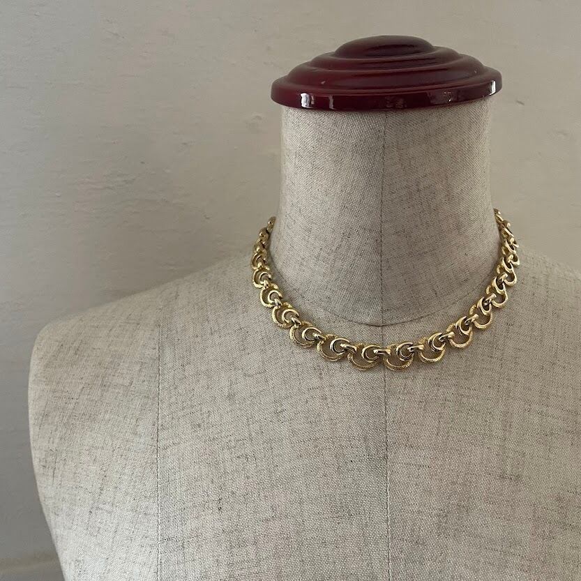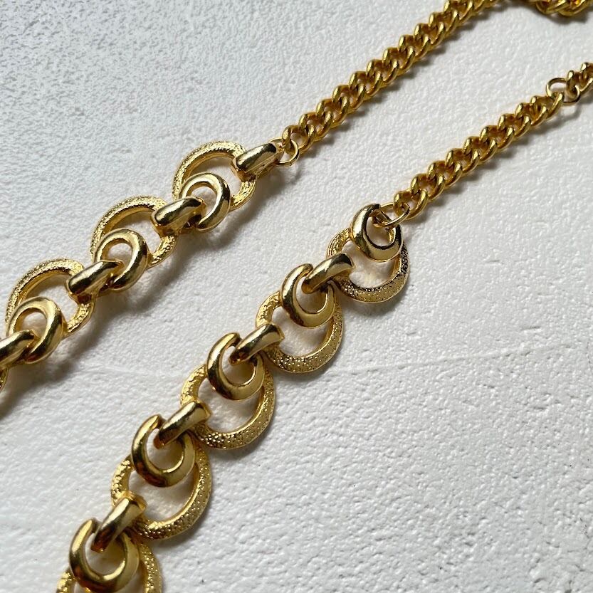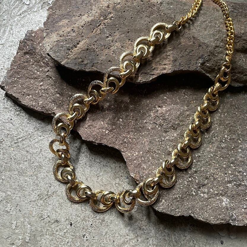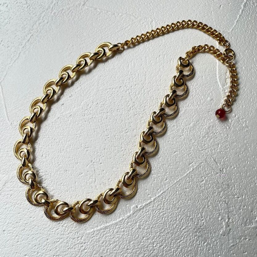テクスチャーが入ったサークルパーツが魅力のチェーンネックレスです。