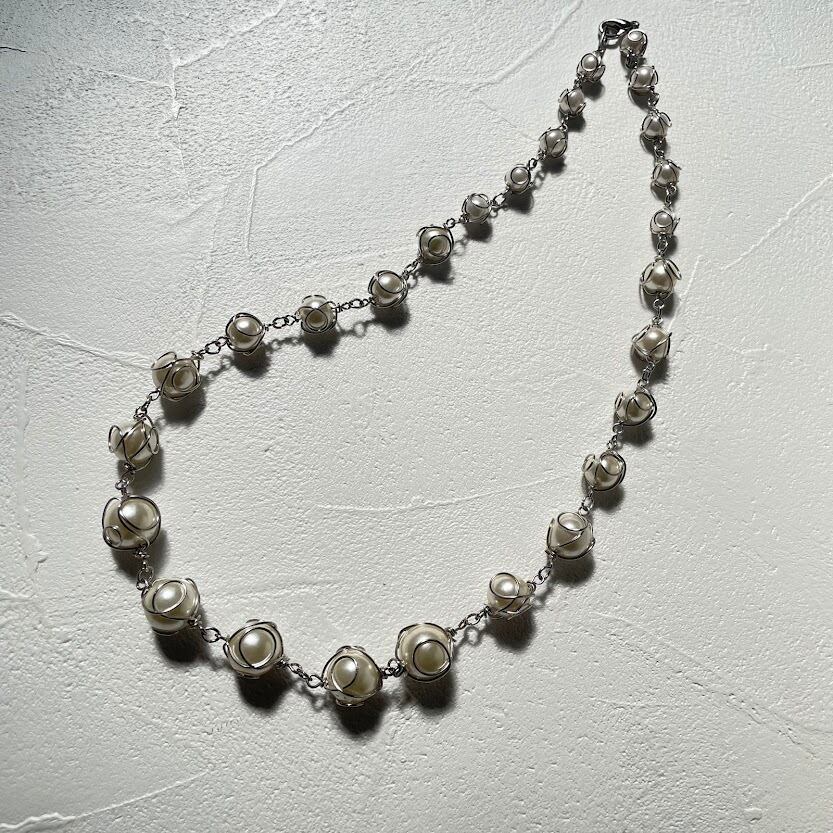 パールに合わせてワイヤーを曲げて作られた、立体的なデザインが魅力のネックレスです。