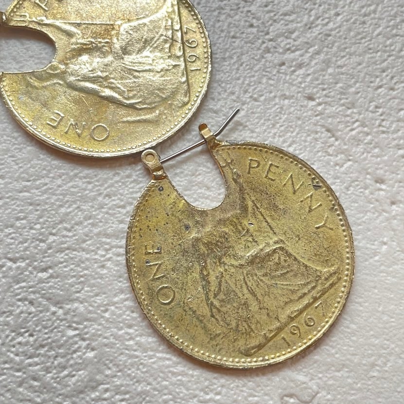エリザベス女王が描かれたコインパーツが雰囲気あるピアスです。