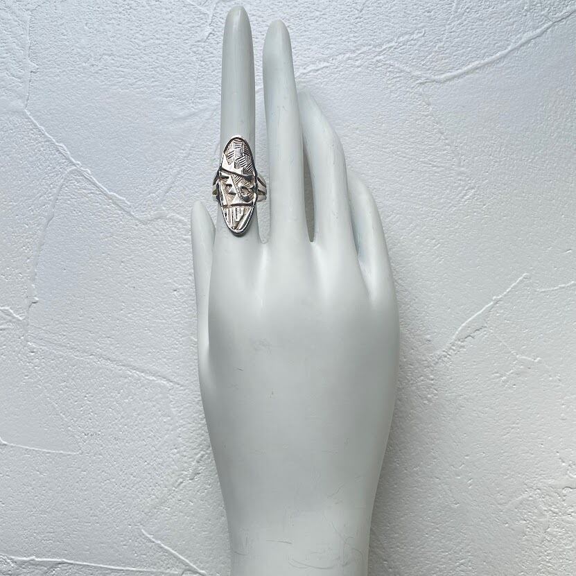 オーバルなシルエットに、ネイティブ感あるデザインが魅力のシルバー925のリングです。