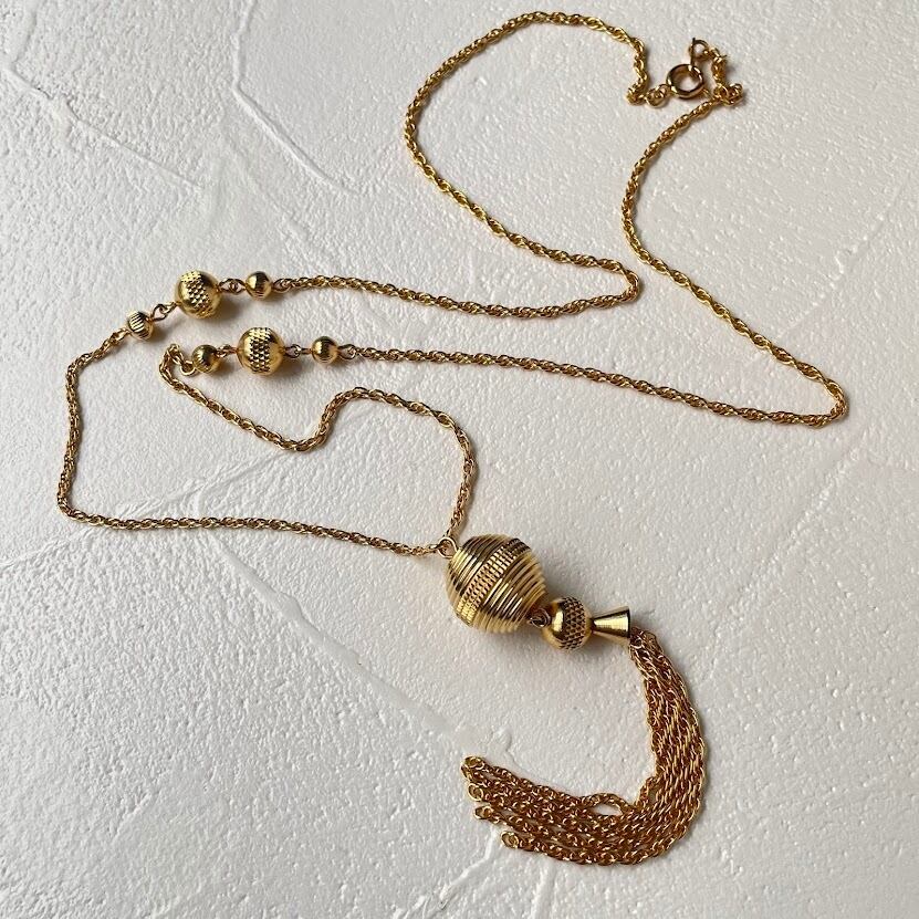 テクスチャーが入ったボールパーツにチェーンタッセルが魅力のネックレスです。