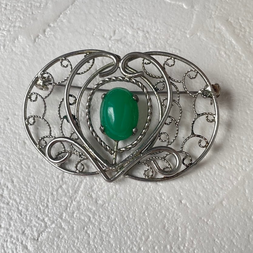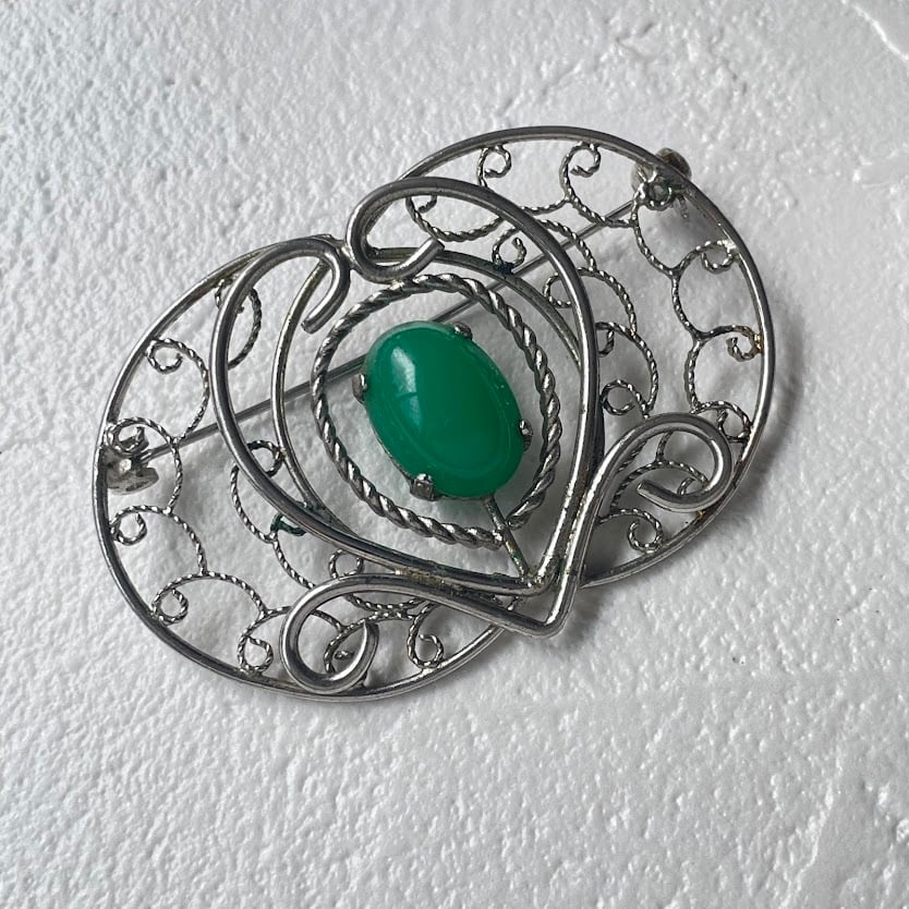曲げ加工で作られたアールデコ感あるデザインが雰囲気あるブローチです。