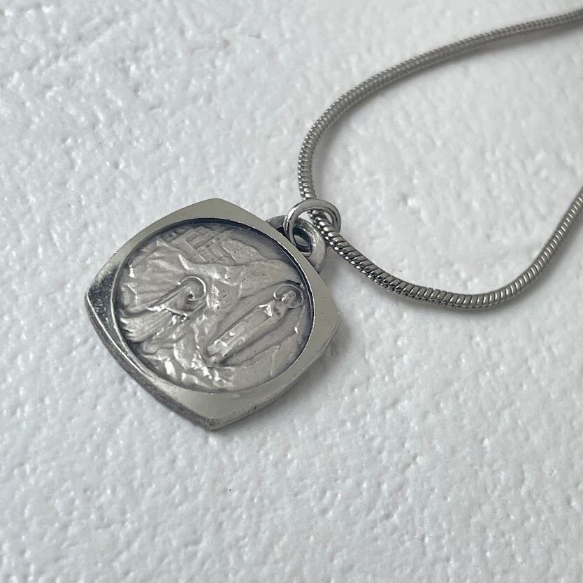 デザインに雰囲気がある、フランスのメダイを使ったヴィンテージネックレスです。