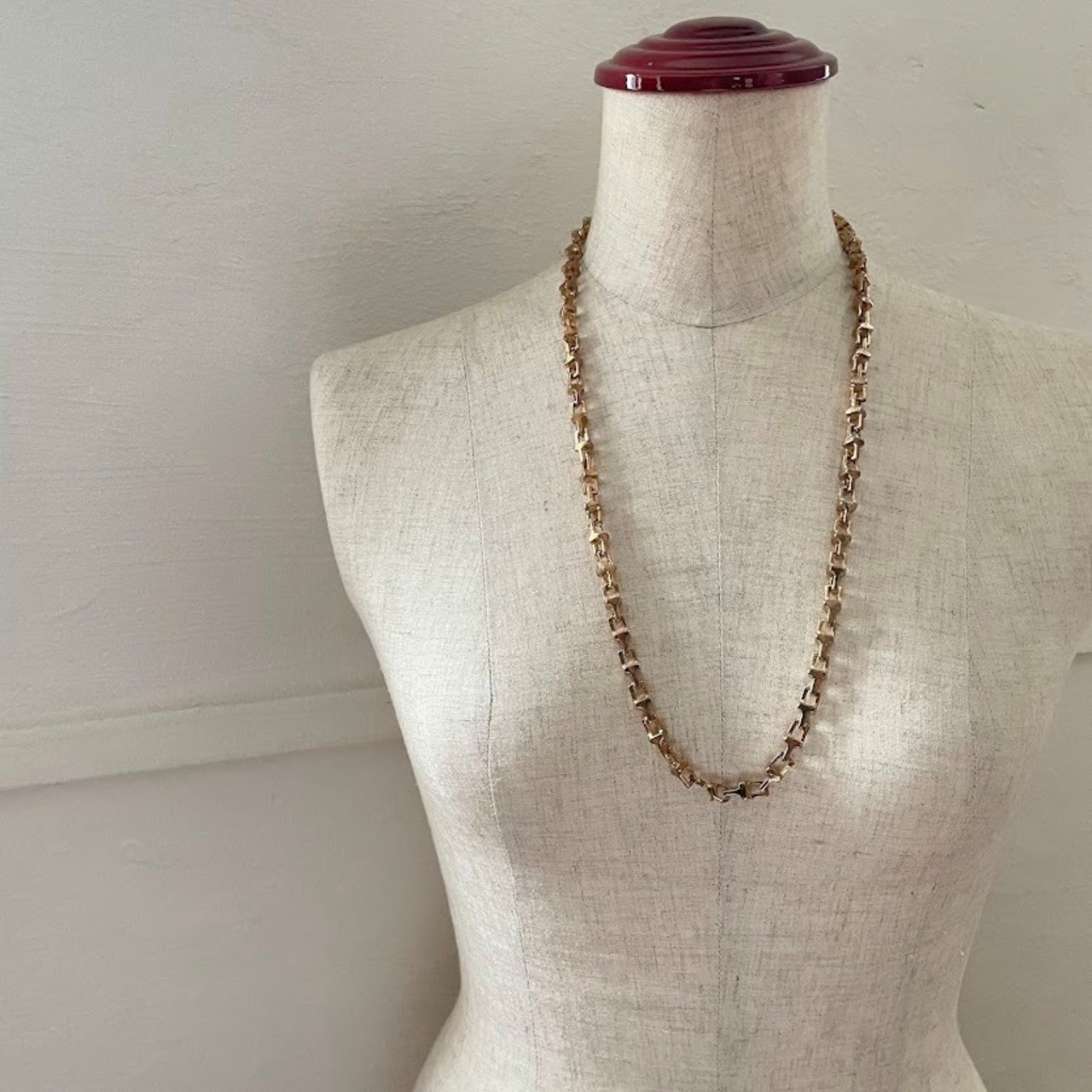 キャストパーツを繋げた立体的なチェーンが魅力の少し重みがあるネックレスです。