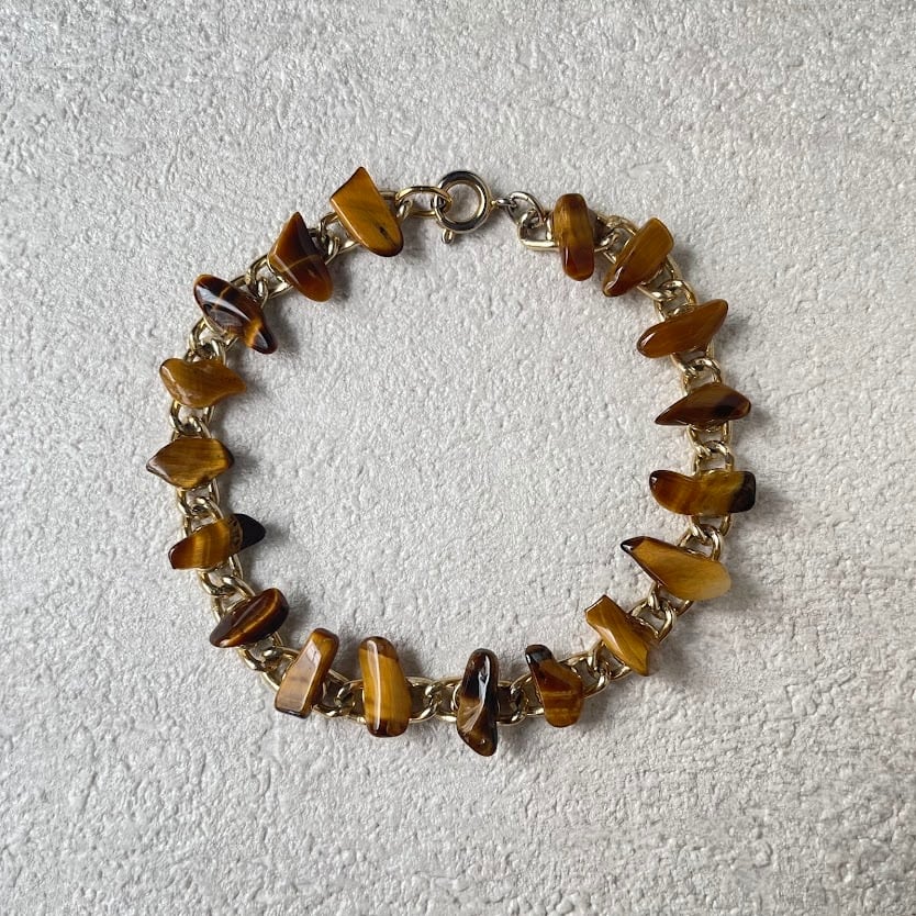 不揃いにカットされた艶感あるブラウンの石が、雰囲気あるブレスレットです。