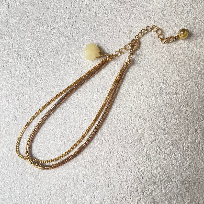 2連のチェーンに半透明なストーンが魅力のブレスレットです。