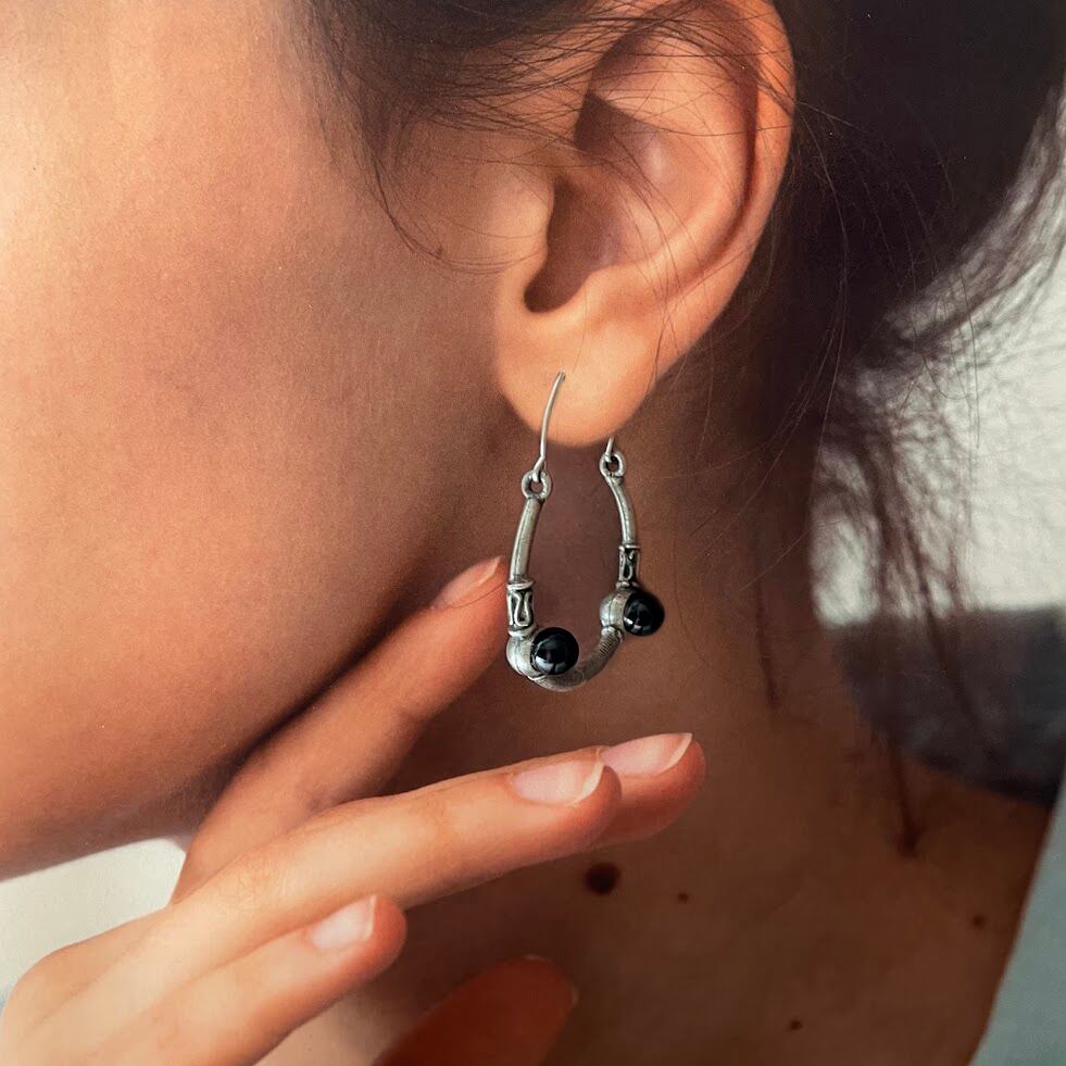 アンティークライクなデザインが魅力のフープのピアスです。