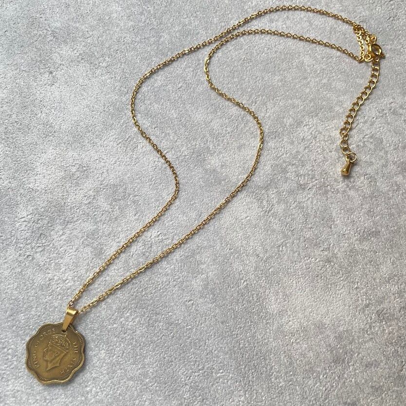 セイロン(現スリランカ)で1951年に発行されたヴィンテージコインをリメイクして作られた、ハンドメイドのネックレスです。