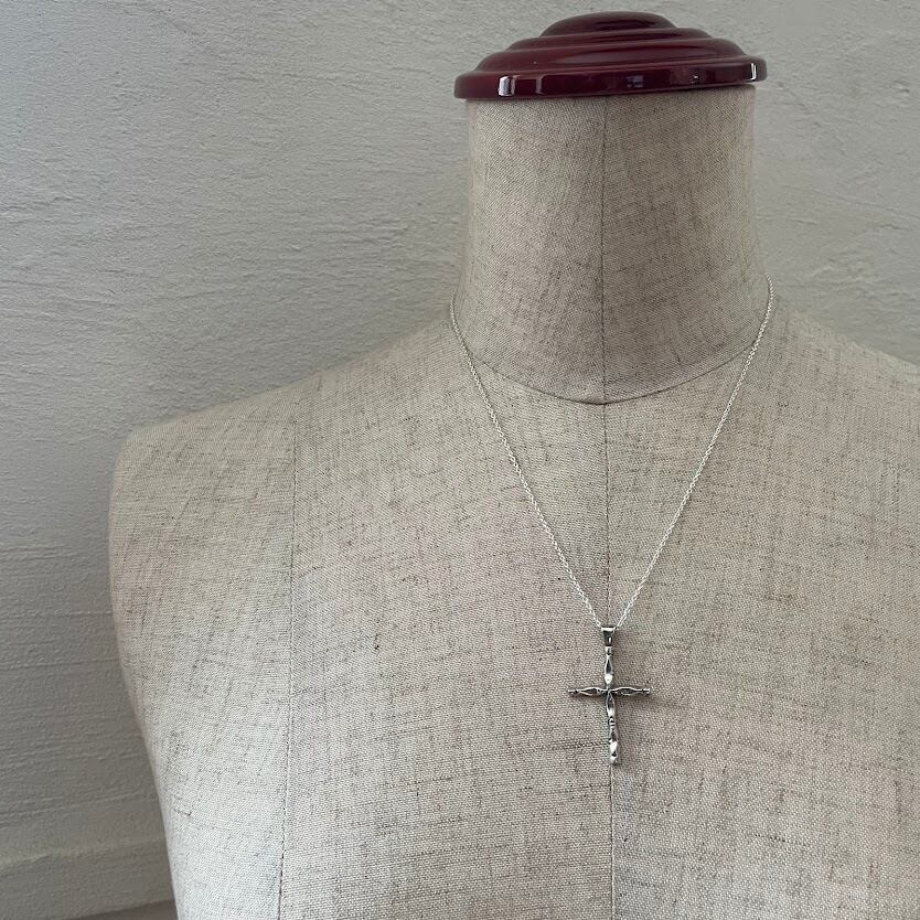 クロスの凹凸あるデザインが雰囲気あるシルバー925のネックレスです。