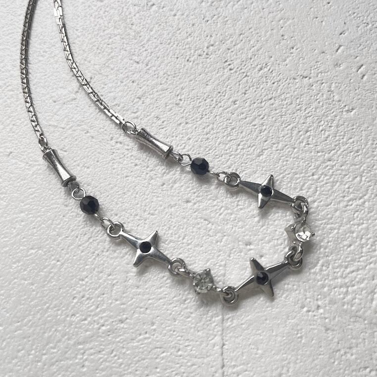 クロスを繋げたチェーンとブラックのガラスの組み合わせが魅力のショートネックレスです。