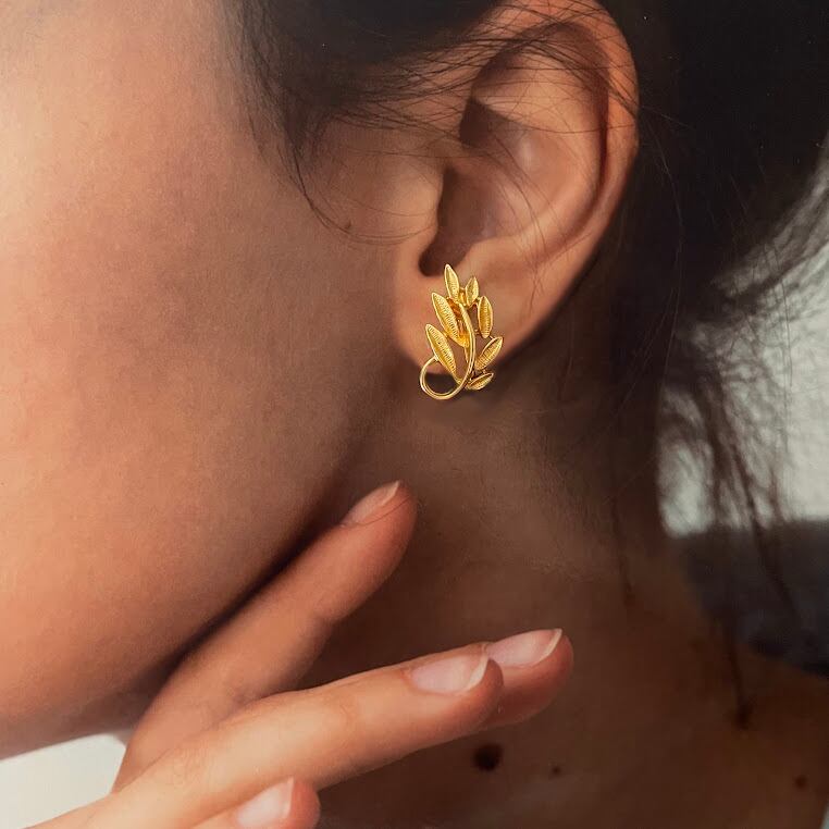 リーフの葉脈がテクスチャーで表現された、細かなデザインのイヤリングです。