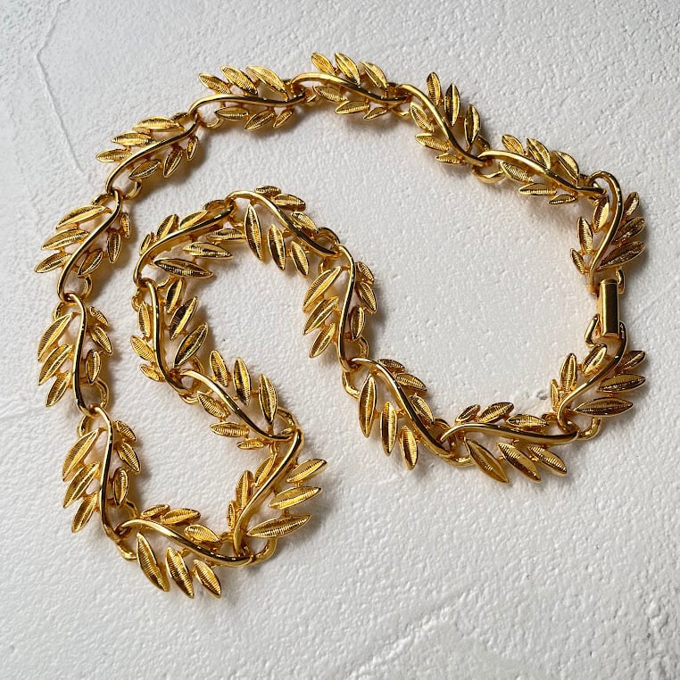 葉脈までデザインされたリーフパーツが素敵な、ボタニカルデザインのネックレスです。