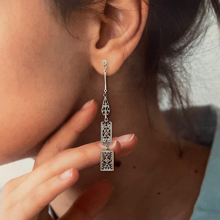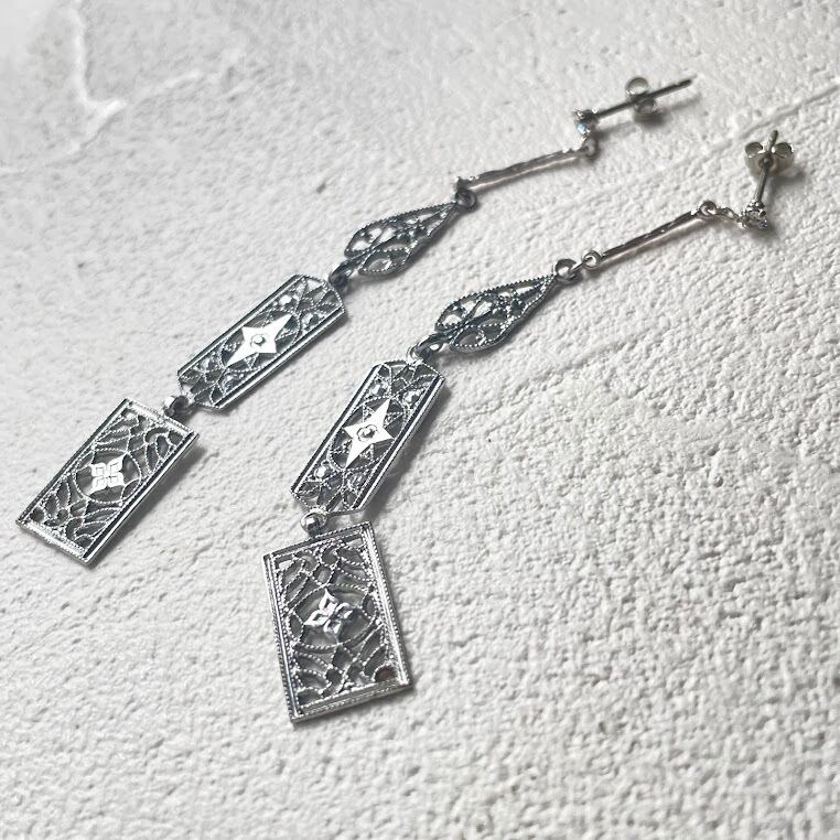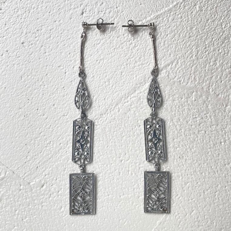 繊細にデザインされた雰囲気ある透かしパーツが魅力のピアスです。