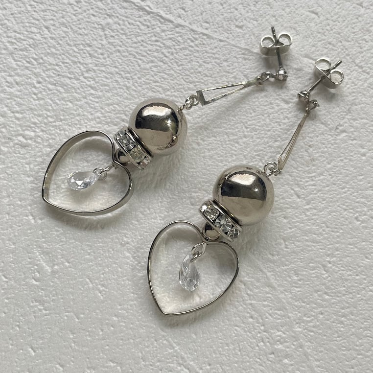 オープンハートの中のキュービックジルコニアが上品に輝くピアスです
