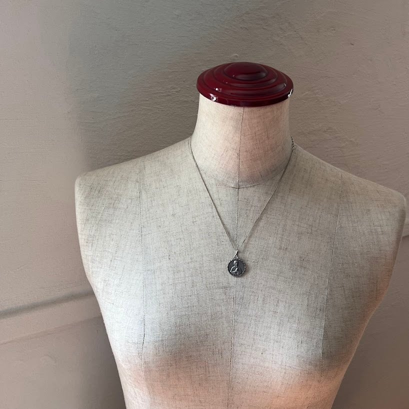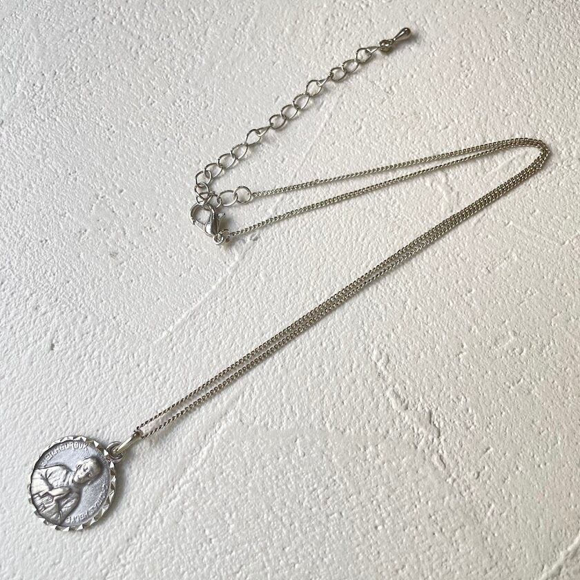 デザインに雰囲気がある、フランスのメダイを使ったヴィンテージネックレスです。