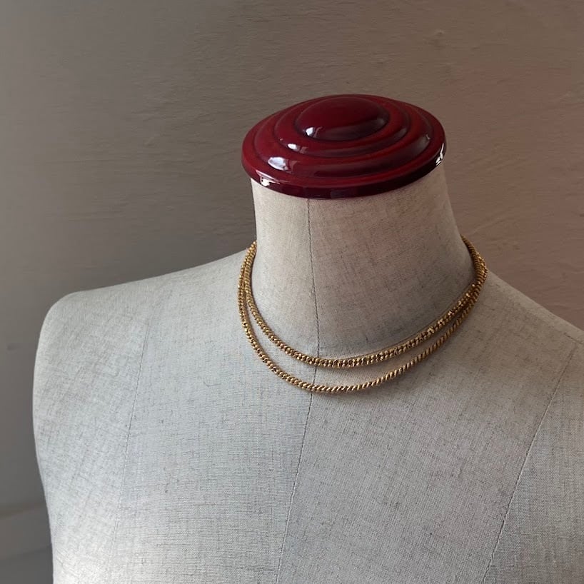 ロングチェーンなので、2連にしてのコーディネートも可能です。