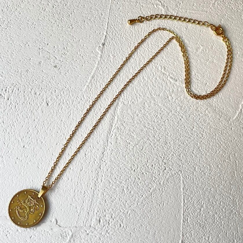 フィンランドで1999年に発行されたヴィンテージコインをリメイクして作られた、ハンドメイドのネックレスです。