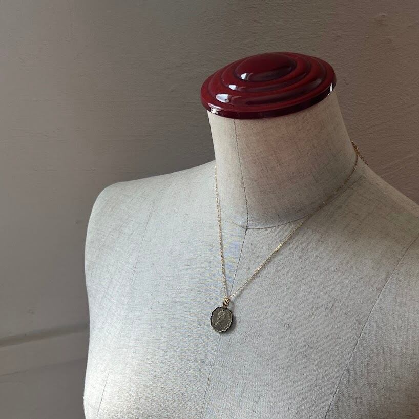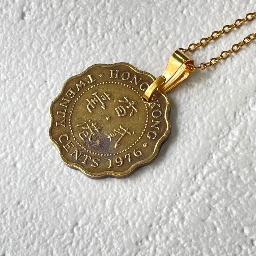 香港で1976年に発行されたヴィンテージコインをリメイクして作られた、ハンドメイドのネックレスです。