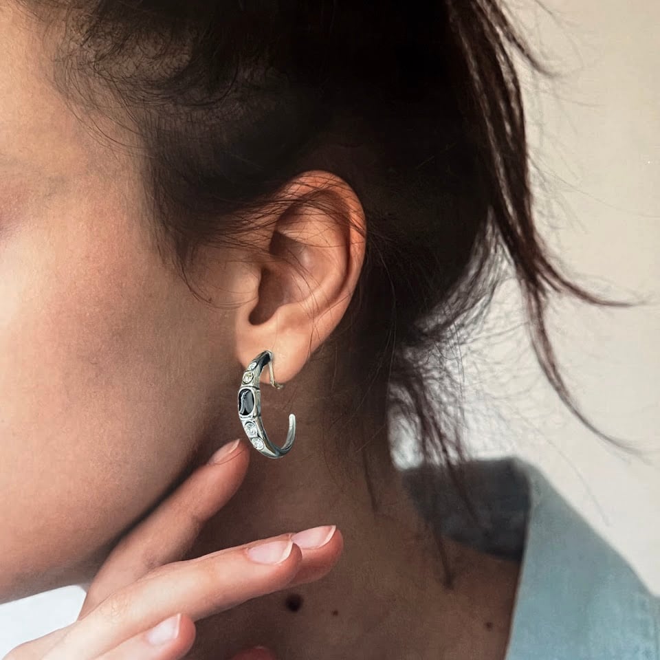 ネジバネ式のイヤリングで金具が大きく開くので装着がしやすく、耳たぶの厚さに合わせてネジで調整できます。